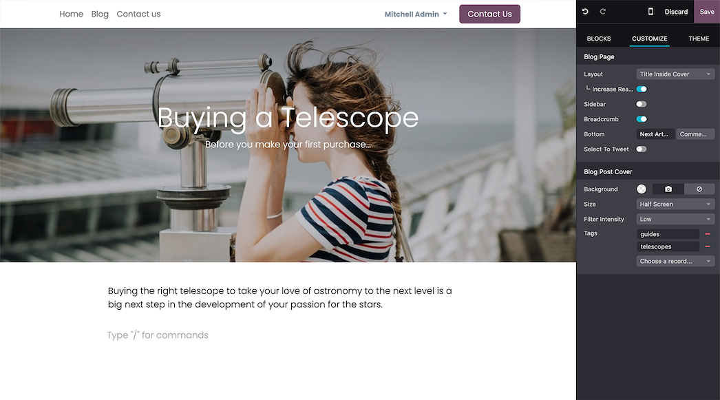 Odoo Blog is een optimaal contentmanagementsysteem om je ideeën in de kijker te brengen, je publiek te betrekken en een community op te bouwen.