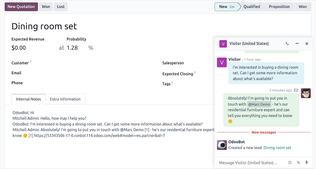 Odoo Chat is geïntegreerd met alle Odoo-apps