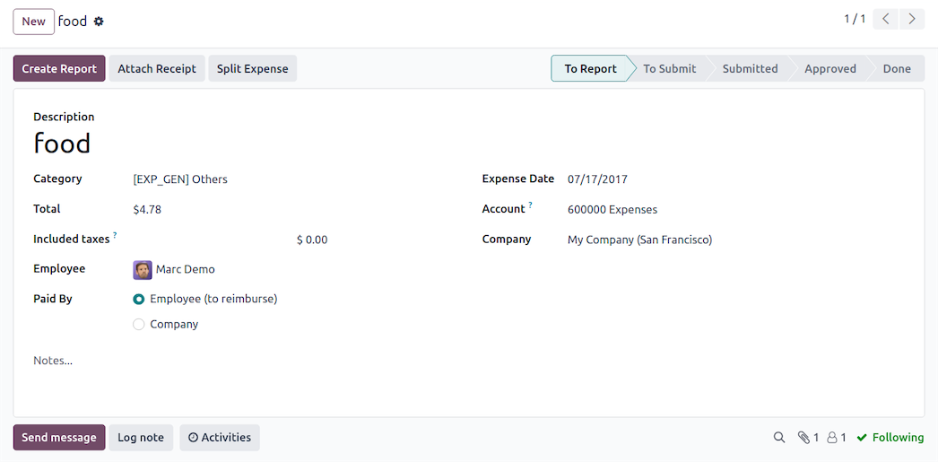 Dien je uitgaven in vanaf je telefoon! Of je nu een uitgave via e-mail verstuurt of een bonnetje uploadt met de mobiele app van Odoo, vergeet onderweg nooit een declaratie in te dienen!