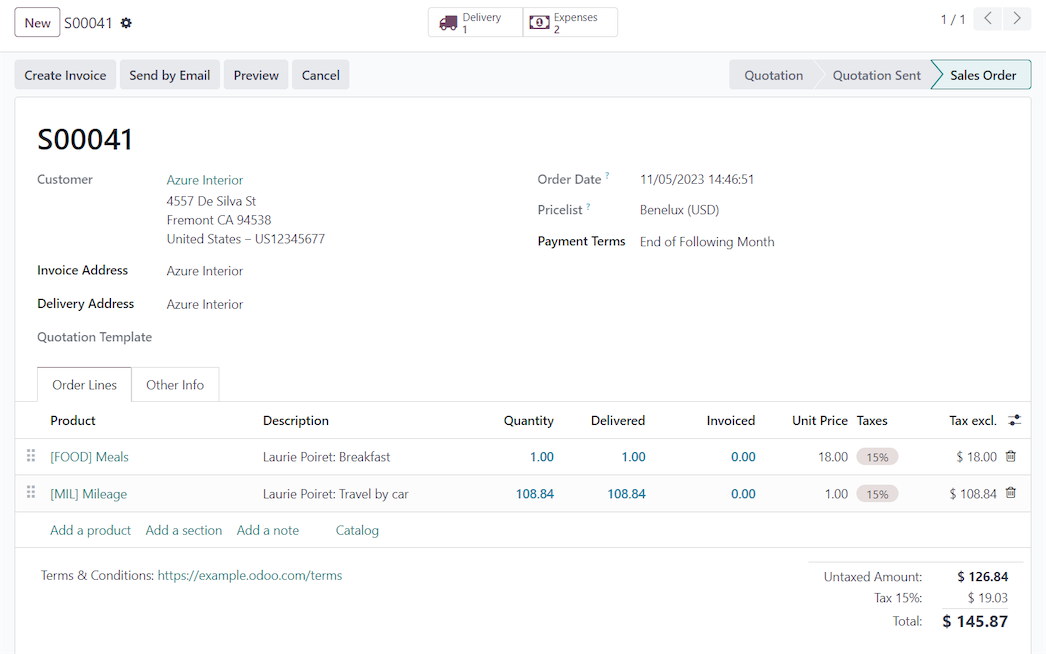 Dankzij de integratie van boekhouding en verkoop worden goedgekeurde declaraties weerspiegeld in vooraf ingestelde boekhouddagboeken en worden hergefactureerde items automatisch en in realtime toegevoegd aan verkooporders.