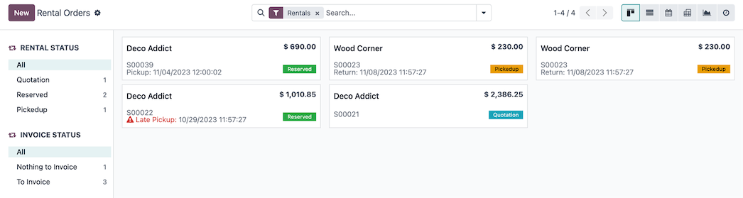 Odoo Verhuur biedt een eenvoudige oplossing om elke stap van het verhuurproces te overzien. Beheer producten, plan ophalingen in en onderteken documenten vanaf één platform.