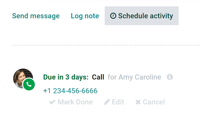 Plan een activiteit in zoals een telefoongesprek of een afspraak, of verstuur een e-mail.